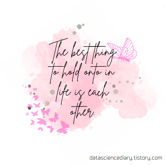 "The best thing to hold onto in life is each other." (인생에서 곁에 두어야할 가장 소중한 것은 서로이다.)