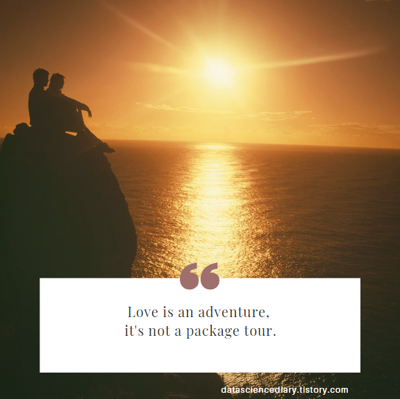 "Love is an adventure, it's not a package tour." (사랑은 모험이다. 패키지 여행이 아니다.)